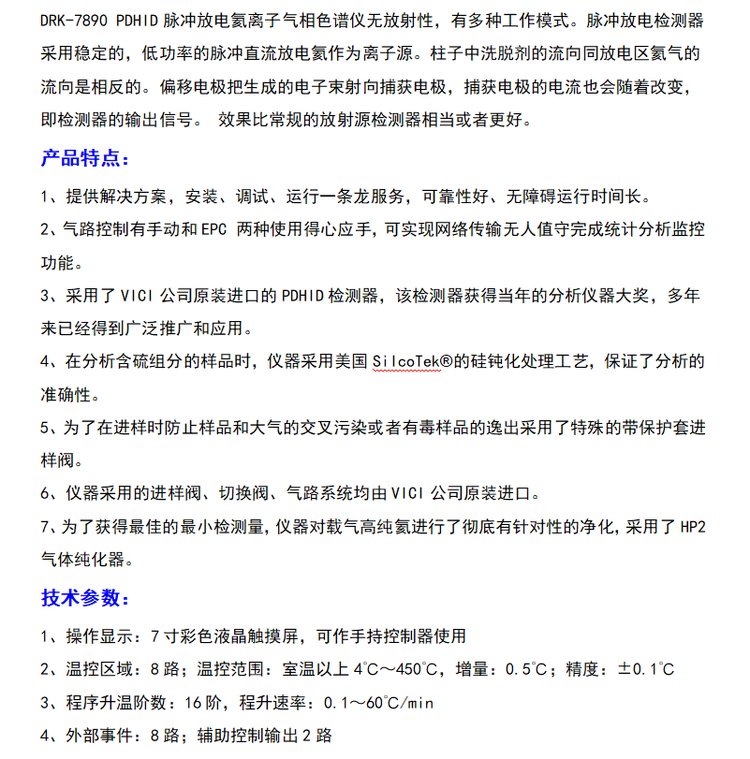 DRK-7890 PDHID 脉冲放电氦离子气相色谱仪 8路控温